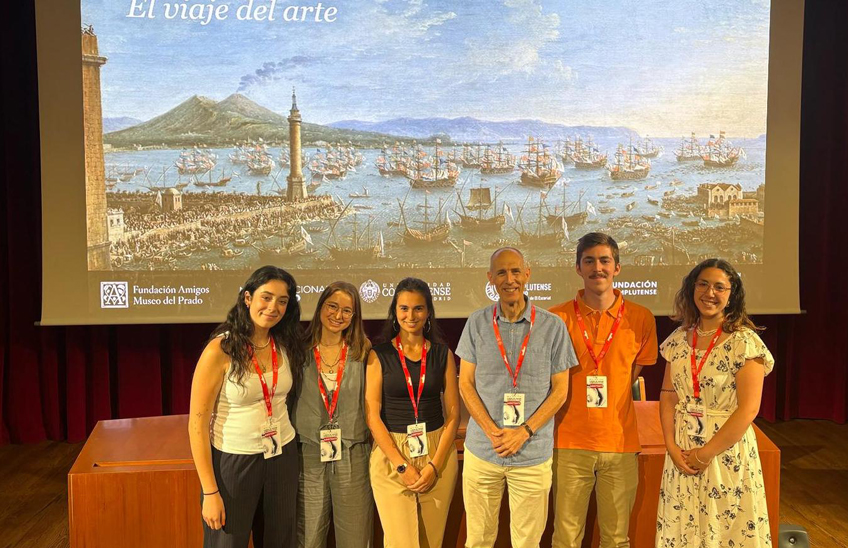Gracias a una beca de la Fundación Amigos del Museo del Prado, Emilia Ferrán (Historia), Carmen Gómez Margarito (Historia + Diploma en Arqueología), Olaia Morales (Relaciones Internacionales + Historia), Pablo Pastor (Relaciones Internacionales + Historia) y Maria Zegers (Historia + Periodismo), estudiantes de la Facultad de Filosofía y Letras, han podido asistir al curso, acompañados por el profesor Javier Azanza, catedrático de Historia del Arte.
