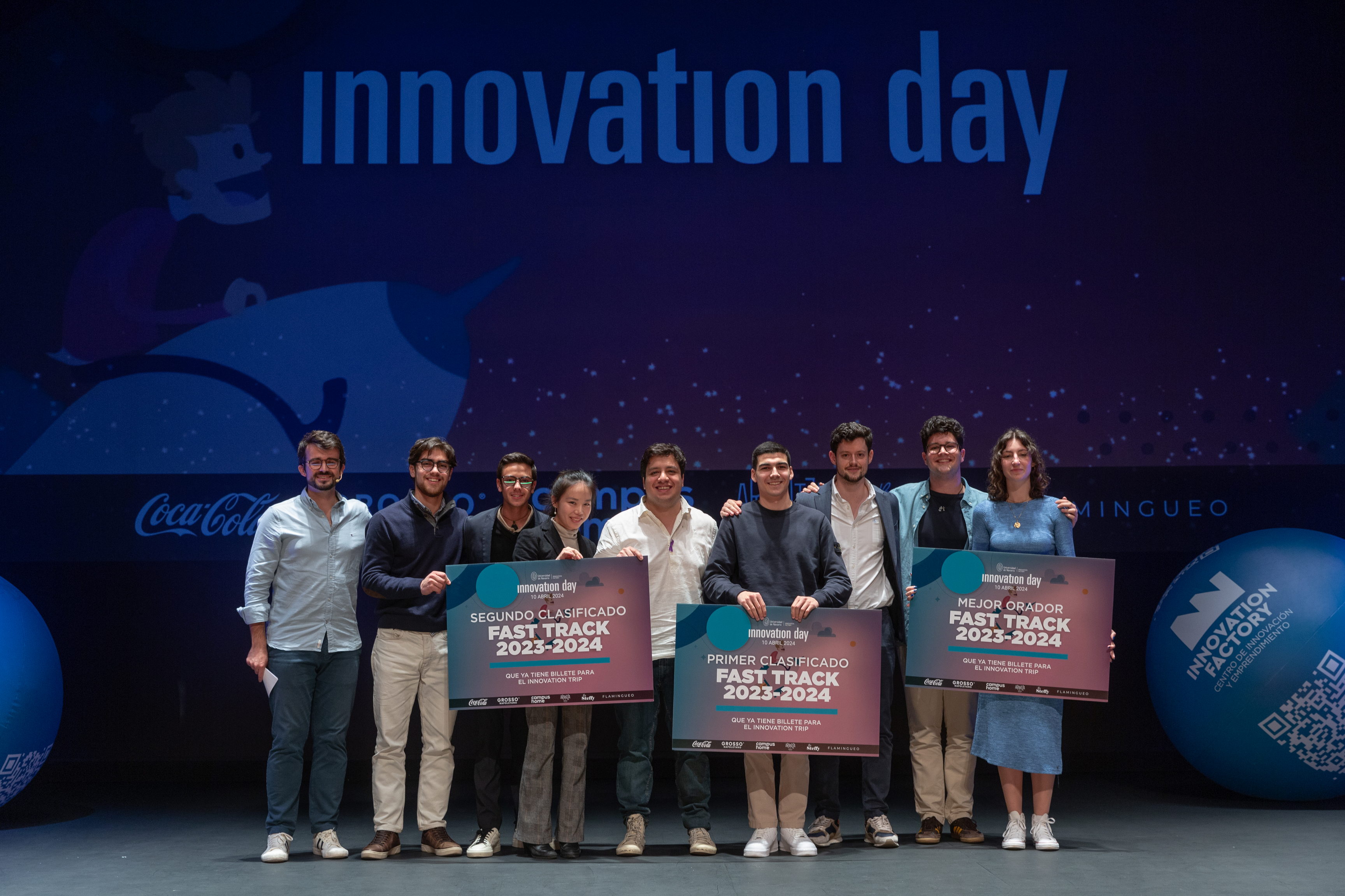 La entrega de premios para alumnos de grado tuvo lugar durante la gala celebrada ayer en el Museo Universidad de Navarra: el Innovation Day, evento anual de innovación y emprendimiento en la Universidad. La gala estuvo protagonizada por las intervenciones de Hugo Rodríguez de Prada, CEO de la cadena de pizzerías Grosso Napoletano, premiada como la mejor cadena del mundo en el evento del Ranking 50TopPizza Awards celebrado en Nápoles; Emilio Peña, que compartió su experiencia como emprendedor hasta llegar a convertirse en CEO de Flamingueo; y Ana Megía, impulsora de Medical Plasmas, startup del ámbito de la salud que utiliza el cuarto estado de la materia – plasma atmosférico frío – para la curación de úlceras torpidas de origen vascular. Además, el influencer Marius Lekker, antiguo alumno de la Facultad de Medicina, estuvo a cargo de la presentación del evento.