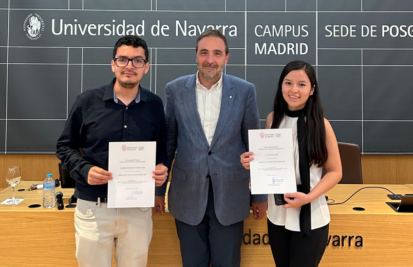 FotoCedida/De izquierda a derecha: Manuel Alexander Fustamante, accésit, José Manuel Cabrero, director de la Cátedra Onesta y Tais Guevara, ganadora del PFC