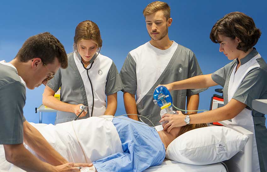 PhotoManuel Castells/Estudiantes en el Aula de Simulación de la Facultad de Enfermería de la Universidad de Navarra.