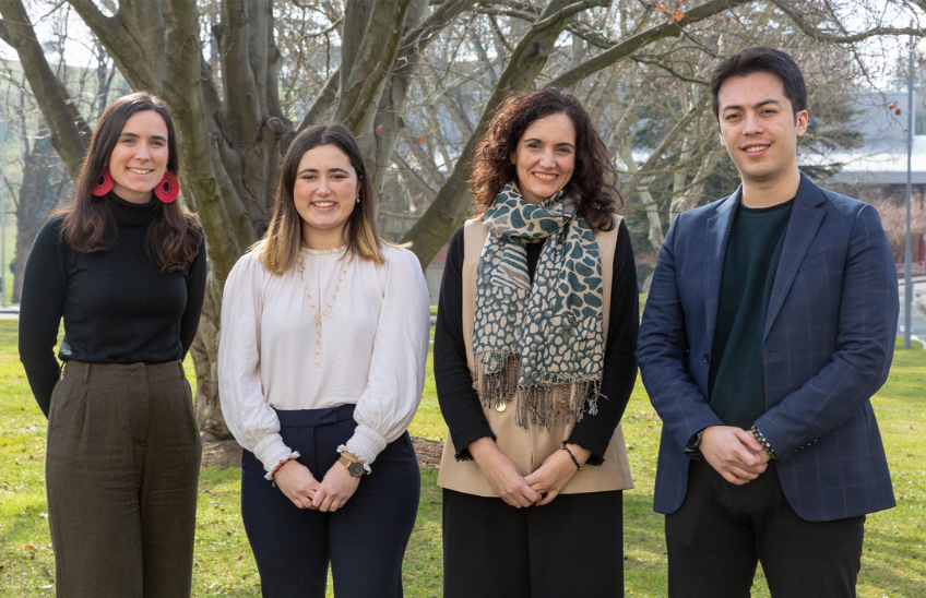 Los estudiantes de doctorado, Alexander Blanco (Facultad de Comunicación), Silvia Estarriaga (Facultad de Farmacia), Aimee Valle (Facultad de Ciencias), Álvaro Sarasola (Escuela de Ingeniería), Blanca Gallostra (Facultad de Filosofía y Letras) y Teresa García de Santos (Facultad de Económicas) realizan su investigación en alguna de las áreas de la Estrategia 2025 de la Universidad becados por “Programa de Ayudas Investigación y Sostenibilidad E2025” que impulsa el vicerrectorado de Investigación y Sostenibilidad.