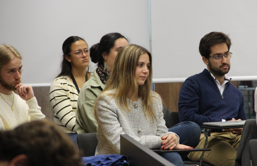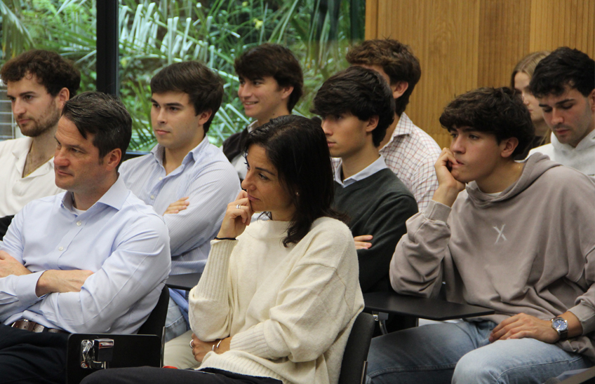 Para Pego, esta sesión suponía “una oportunidad para intercambiar conocimiento entre la academia y la empresa”. Con ese objetivo, se optó por un formato de preguntas y respuestas en castellano e inglés, en el que profesores y estudiantes se fueron incorporando a la conversación para plantear sus dudas e inquietudes.
