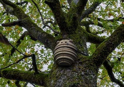 Esta caja nido presenta dos novedades importantes. Por un lado “su diseño permite cambiar de usuario” pudiendo albergar dos especies distintas. La anidadera sugerida está pensada para que la puedan ocupar tanto el vencejo común (Apus apus) –ave migratoria presente en las ciudades– así como los insectos saproxílicos (Osmoderma eremita) que habitan en los bosques. Por otra parte, la forma de la caja se puede orientar en horizontal o vertical dependiendo del animal que vaya a residir.