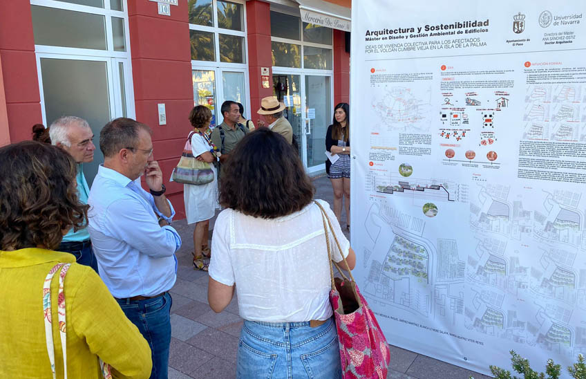 Estudiantes de posgrado de la Escuela de Arquitectura de la Universidad de Navarra han presentado al Ayuntamiento de El Paso sus proyectos de viviendas colectivas para los afectados por el volcán de La Palma. Este proyecto nace a iniciativa del arquitecto y profesor del Máster en Diseño y Gestión Ambiental de Edificios, César Ruiz-Larrea, tras iniciarse la erupción del volcán el pasado septiembre. De este modo, el Ayuntamiento de El Paso y la Escuela de Arquitectura firmaron un convenio de colaboración con el objetivo de que los estudiantes aportaran soluciones arquitectónicas para una parcela del municipio de El Paso.